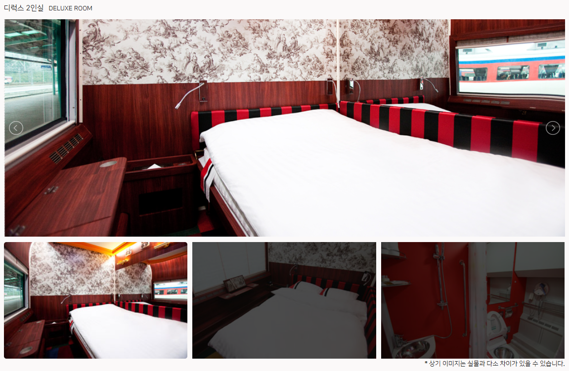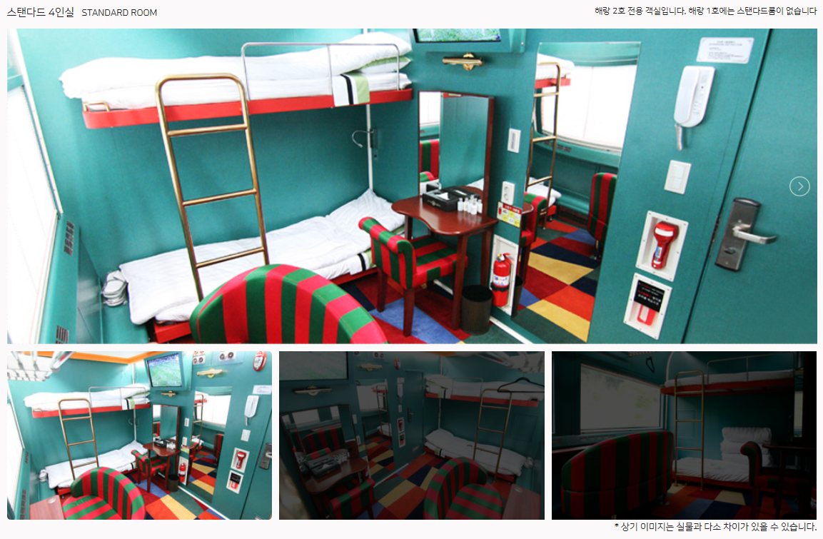 객실은 마치 호텔처럼 꾸며져 있습니다. 좁고 불편할 거라는 일반적인 기차의 이미지는 해랑열차에서는 찾아볼 수 없습니다. 스위트, 디럭스, 패밀리, 스탠다드로 구분되어 있으며, 일부 객실에는 개인 샤워실까지 마련되어 있어요.