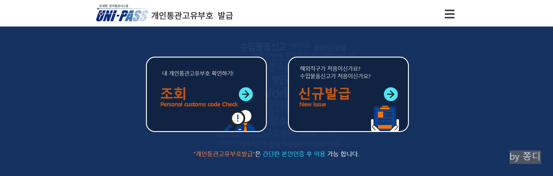 "개인통관고유부호발급"은 간단한 본인인증 후 이용 가능 합니다.